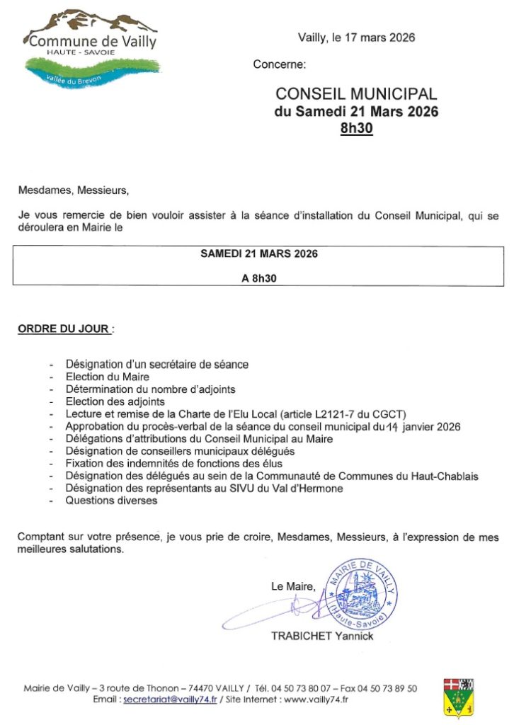 Nous avons le plaisir de vous informer de la tenue de la séance d’installation du Conseil municipal :
